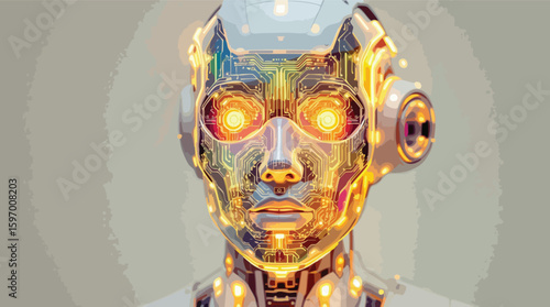 Futuristic robot head ai artificial intelligence cybernetic face android technology concept design 3d render
