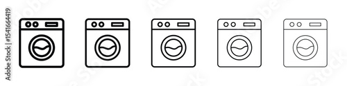 Clothes washing machine vector icon sheet. laundry washer sign. home appliance electric wash machine vector symbol on white background