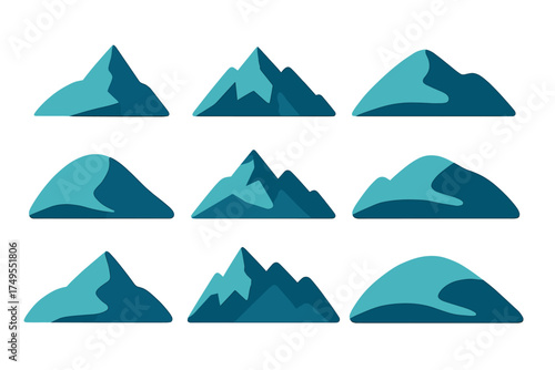 Mountain Peaks Silhouette Icons Set Alpine Ridge Logo Elements Vector