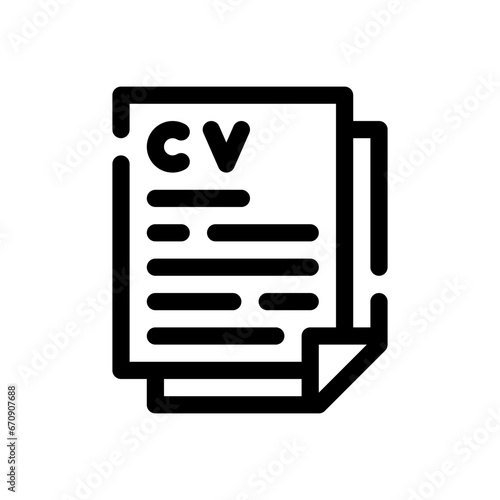 Hand drawn cute outline illustration vacancy resume. Flat vector candidate cv line art doodle. Company employee hiring. Office worker interview icon. Job search. Human resource recruitment. Isolated.
