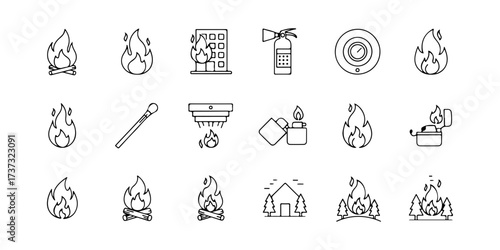 Set of Shield with fire icon. Protection from fire or fire protection or protect from heat icon. Vector Illustration.