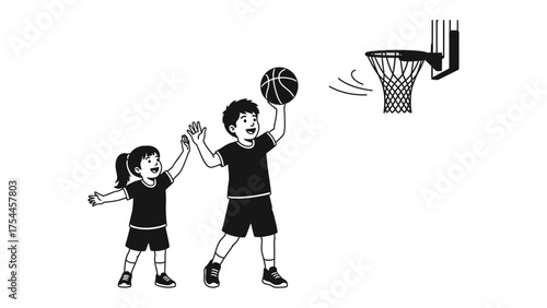 A young boy with his backpack slung over one shoulder eagerly chats with his classmates as they make their way to their new classroom on the first day. Vector illustration