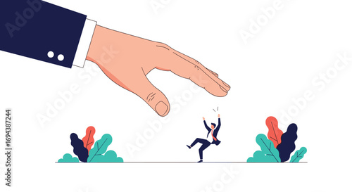 Pushing Bitcoin prevent from price falling down, cryptocurrency risk, fluctuation or volatility, crypto crisis or panic sales concept.flat illustration.