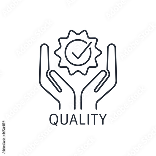 Maintain the quality standard.Vector linear icon isolated on white background.