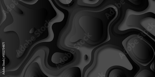 Abstract papercut multi layers background. 3D topographic pattern banner design. Black papercut wave background design. Vector illustration.