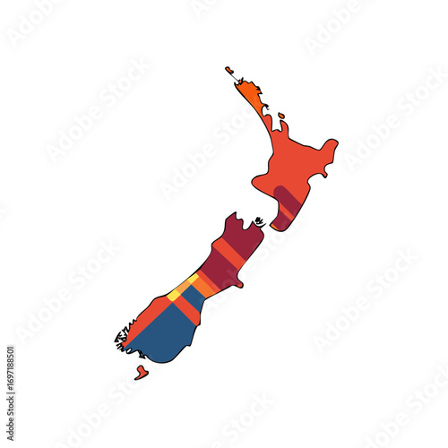 Kiwi bird and fern set, koru spiral and rugby ball, tiki carving and pavlova cake, New Zealand icons, cultural souvenir vector, travel clipart, nature theme