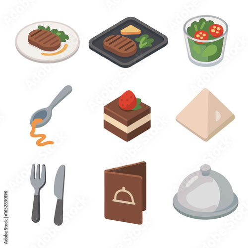 Arranged folded meal icons vector tray salad utensil icon side portion garnished