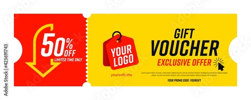 Promo code, coupon code label design. Geometric flat banner. Modern vector illustration