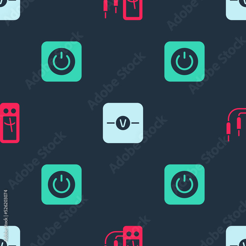 Set Ampere meter, multimeter, Voltmeter and Power button on seamless pattern. Vector