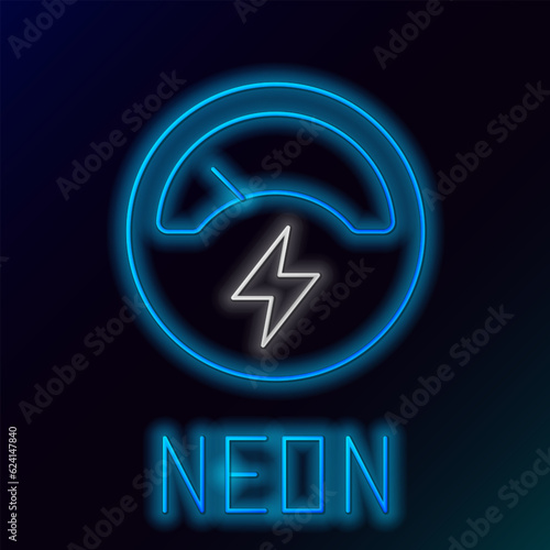 Glowing neon line Ampere meter, multimeter, voltmeter icon isolated on black background. Instruments for measurement of electric current. Colorful outline concept. Vector