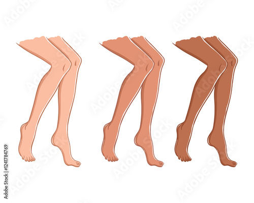 Human naked feet. Female barefoot legs, bare pair feet in standing position flat isolated vector illustration. Hand drawn feet on white