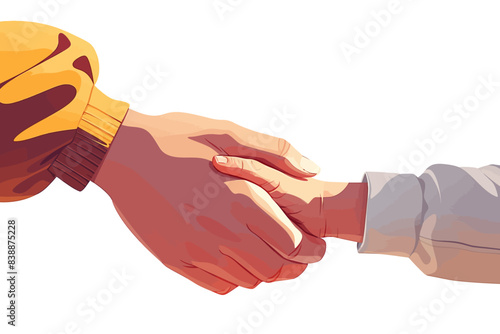 Two Stylized Figures Shaking Hands in Contrasting Black and White Designs