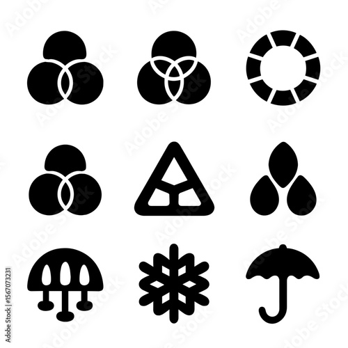 Color and Snow Icons. Solid, filled icon set of color theory: primary colors, secondary colors, tertiary colors, complementary