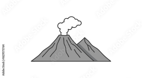 Simple illustration showcasing an active volcano with a secondary dormant peak against a bright white background creating a minimalist geological