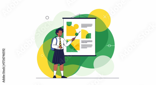 Student Presenting Educational Material Using Pointer On A Colorful, Modern Display