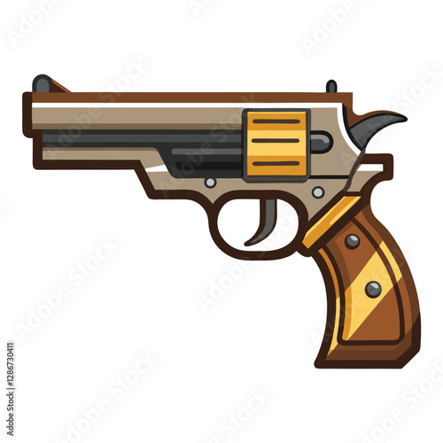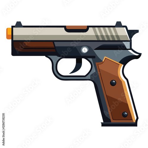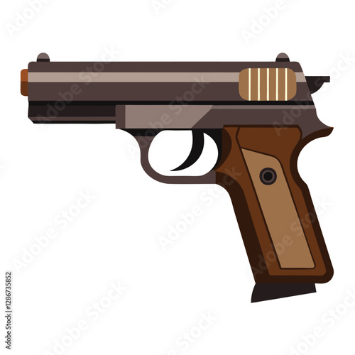 Suppressed pistol illustration. Detailed drawing of handgun with silencer attached.  High-quality image perfect for tactical gear catalogs, crime novels,