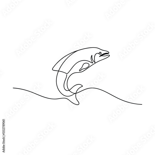 Single line drawing of a leaping salmon, aquatic elegance