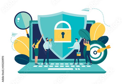 Cyber security internet and networking concept With icons. Cartoon Vector People Illustration