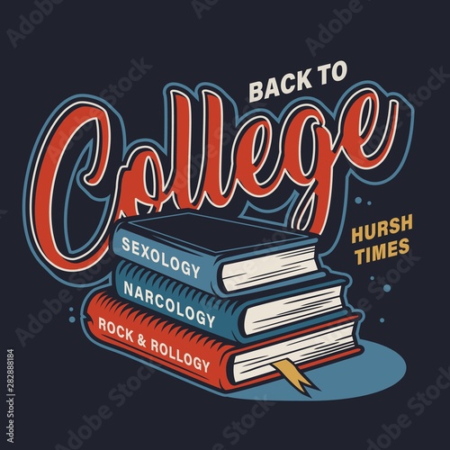Educationand college. Back to school. Vector illustration of university student reading, stack of textbooks with graduate hat, stationery, pencil, notepad and books for poster, greeting card, flyer or