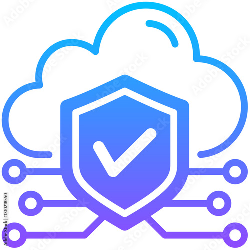 Cloud Server Cyber Security Shield Data Protection Outline Vector Illustration
