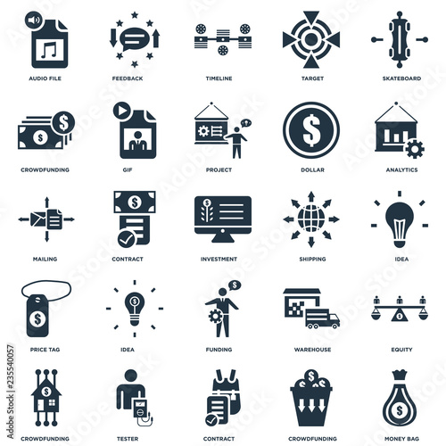 set of 20 line icons such as creator, gif, packaging, price tag, prototype, donation, funding, ipo, stock, bionic contact lens. crowdfunding outline thin icons collection. editable 64x64 stroke
