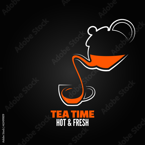 Tea time hand drawn vector illustration with stacked colorful tea cups, teapot, spoon, cupcake and Tea Time quote. Retro vintage style. Cute Tea time party invitation. Use for cards, scrap booking