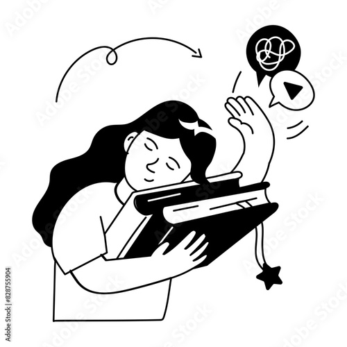 Minimalist flat design illustration of a woman enjoying quiet time while engrossed in a book, symbolizing learning, education, and personal growth