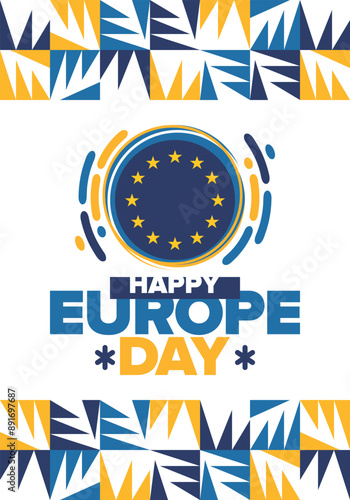 Europe Day. Annual public holiday in May. Is the name of two annual observance days - 5 May by the Council of Europe and 9 May by the European Union. Poster, card, banner and background. Vector