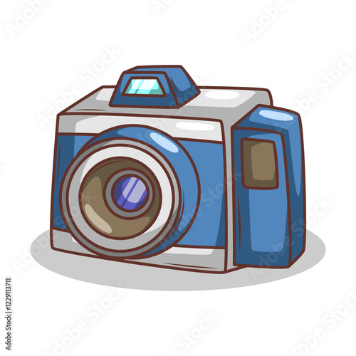 Device for taking photos, filming camera vector. Isolated icon of digital photocamera with lens. Button on item, modern gadgets for professionals used at photoshoot. Illustration in isometric 3d style