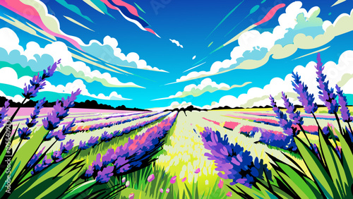 Autonomous farming robots tending fields in rural landscape. Vector illustration