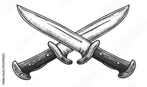 Crossed swords icon set in linear style, vector.