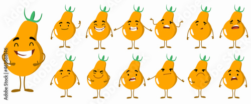 Seth is a cute orange tomato character with different emotions. A collection of cartoon characters-plants. Vector illustration of food products