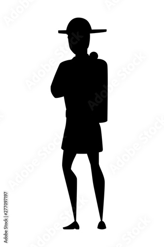 Black silhouette adult male firefighter stand on ground wearing fireproof form cartoon character design flat vector illustration