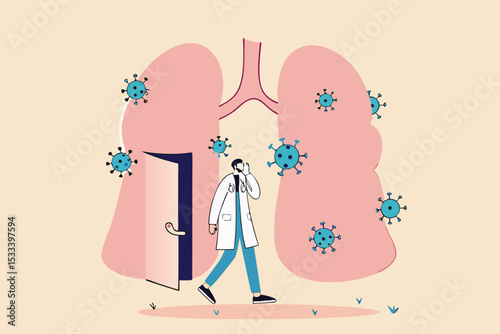 Sick man suffering with bad virus attack, fever, coughing symptoms. Pandemic outbreak of infection, pneumonia shortness of breath and immune system problem. Vector flat style cartoon illustration