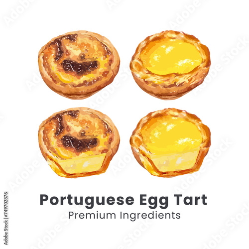 Egg tart - Sweets and cake icon/illustration (Hand-drawn line, colored version)