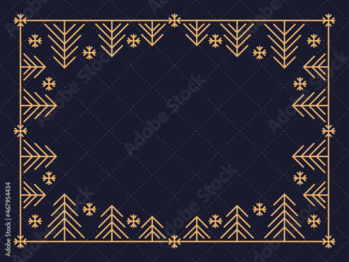 Christmas greetings invite design background with 1920's and 1930's art deco style gold detailing. Festive frame vector illustration.