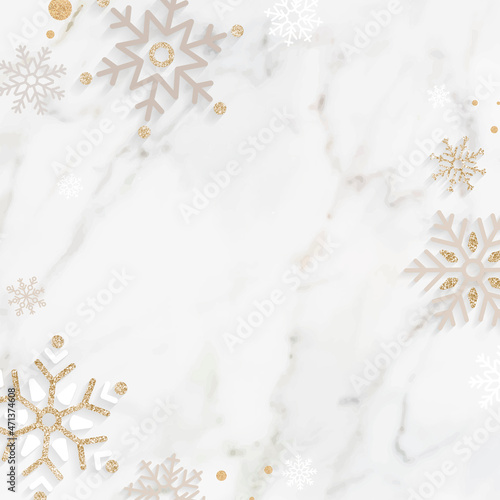 gold snow snowflake frame winter holiday season celebrate christmas sparkling beautiful luxury vector illustration graphic design banner border corner poster