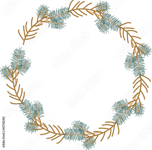 Hand drawn wreath. Winter floral round frame, Christmas card design