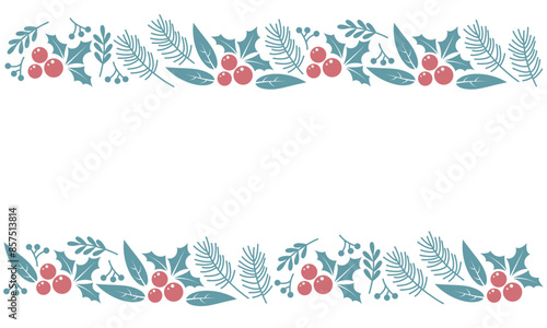 Concept of Christmas greeting card with mistletoe branches. Xmas background with copyspace. Vector