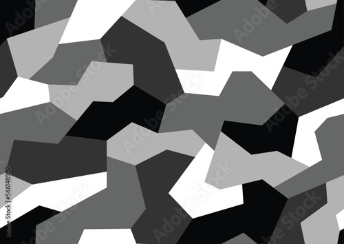 Monochrome geometric camouflage for army, hunting and other use.  White snow camo, seamless texture. Military pattern for fabric print. Vector background