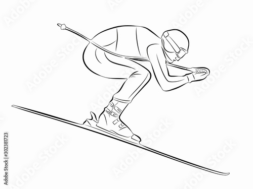 Trendy stylized illustration movement, skier, line vector silhouette.