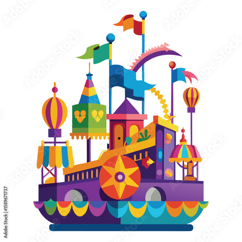 Colorful carnival parade float vector: festive, vibrant, decorative holiday concept design