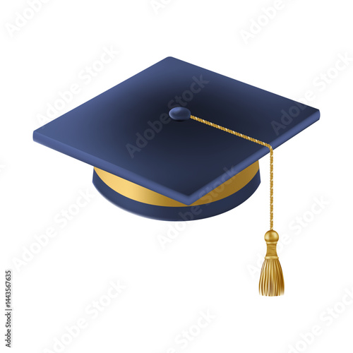 Realistic gold graduate cap. 3D Graduation Doctoral hat.