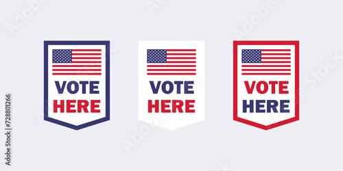 Vote here icons. Election and voting USA. Voting in election. Vector scalable graphics