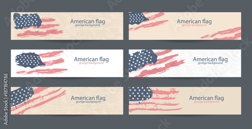 Set American flag, banner design. Collection of USA backgrounds for business, holiday (Independence Day, Labor Day), hand drawing, grunge style, retro. Eps file layers, clipping mask.