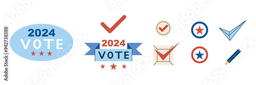 Vote 2024 illustrations set . Element for election design. Isolated vector illustration.