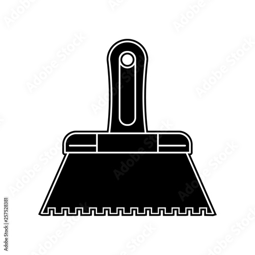 Black silhouette icon of a putty knife spreading plaster with a wooden handle