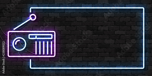 Vector realistic isolated neon sign of Radio frame logo for decoration and covering on the wall background. Concept of broadcasting and dj.