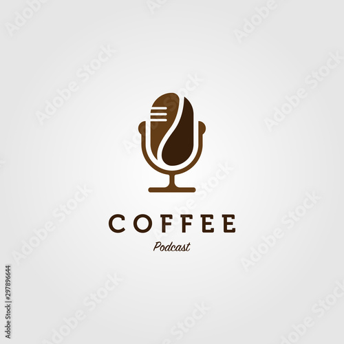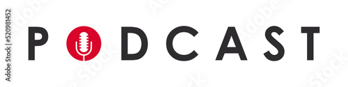 Podcast logo. Modern podcast or radio logo. Microphone inscribed in text. Vector illustration