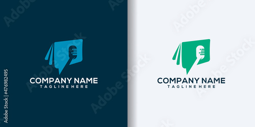 podcast logo icon design with Microphone and Bubble chat or talk icon flat illustration for radio, music, media, multimedia